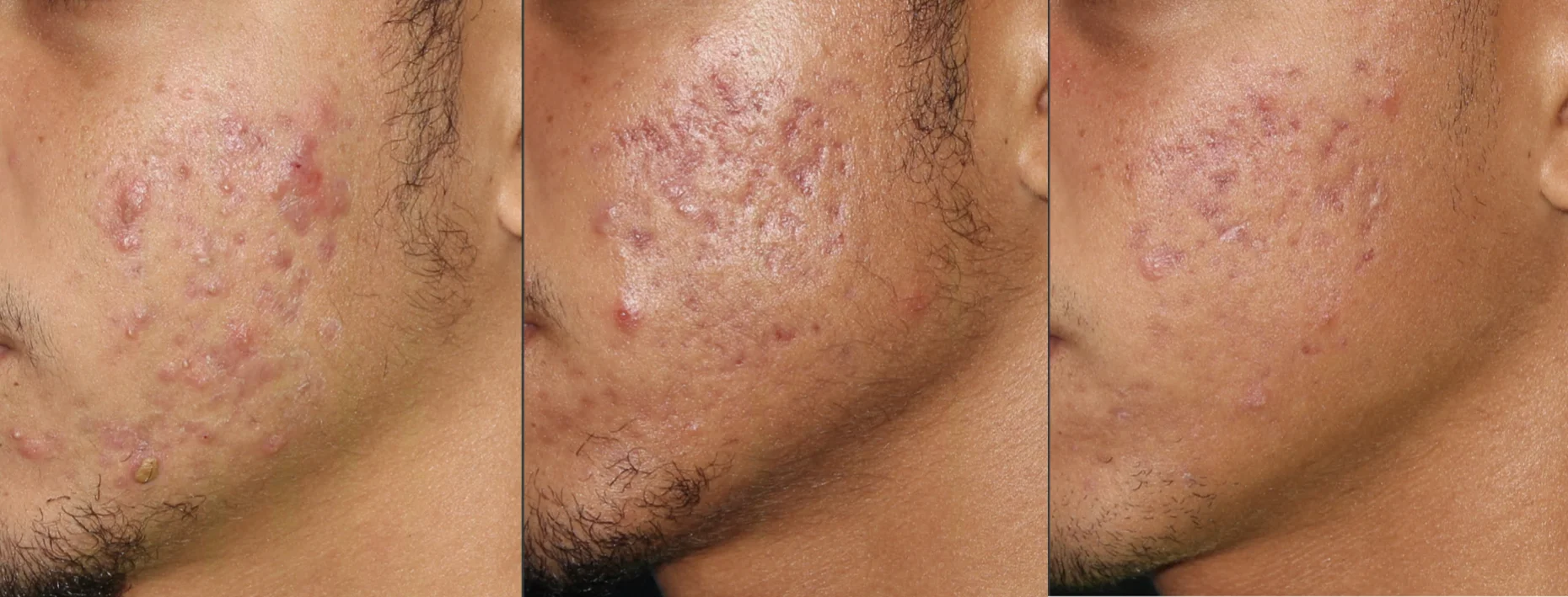 Topical Curcumin improved acne control, reversed early acne scarring and reduced oiliness. The second photo shows skin as topical curcumin commenced. Third photo shows skin one month after topical curcumin was added.