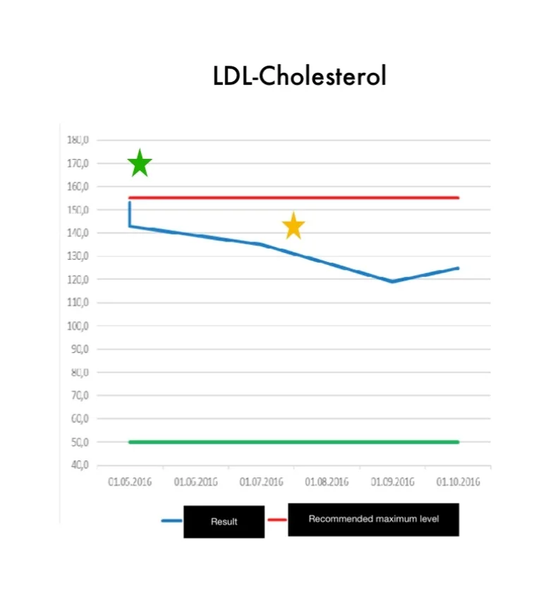 LDL - “Bad” Cholesterol: reduced by addition of the laser watch and even more when curcumin was added.