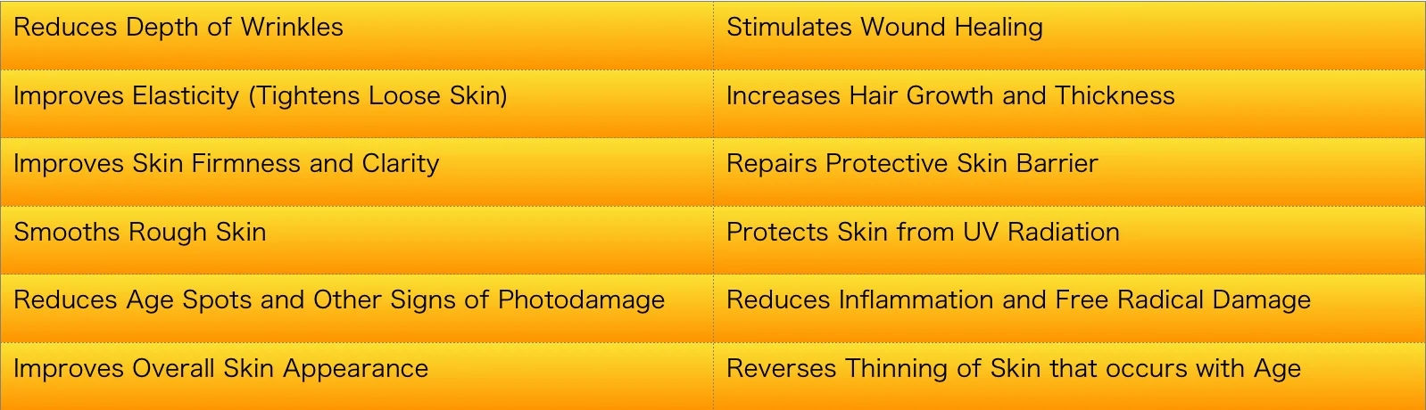 is a potent stimulator of fibroblasts which are principally responsible for the production of collagen, elastin and hyaluronic acid. These are the critical components of youthful skin.