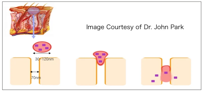 As with many other proven skin care ingredients, the challenge is getting these large molecules into the skin where they can exert their beneficial effect. Many formulations depend on absorption through the skin appendages (hair follicles and sweat glands), but these only make up about 0.1% of the skin surface so this has a negligible effect. Others utilize penetration enhancers to achieve this but these compounds may have several drawbacks including irritation and eventual compromise of the protective skin barrier, this defeating the purpose of improving skin health.