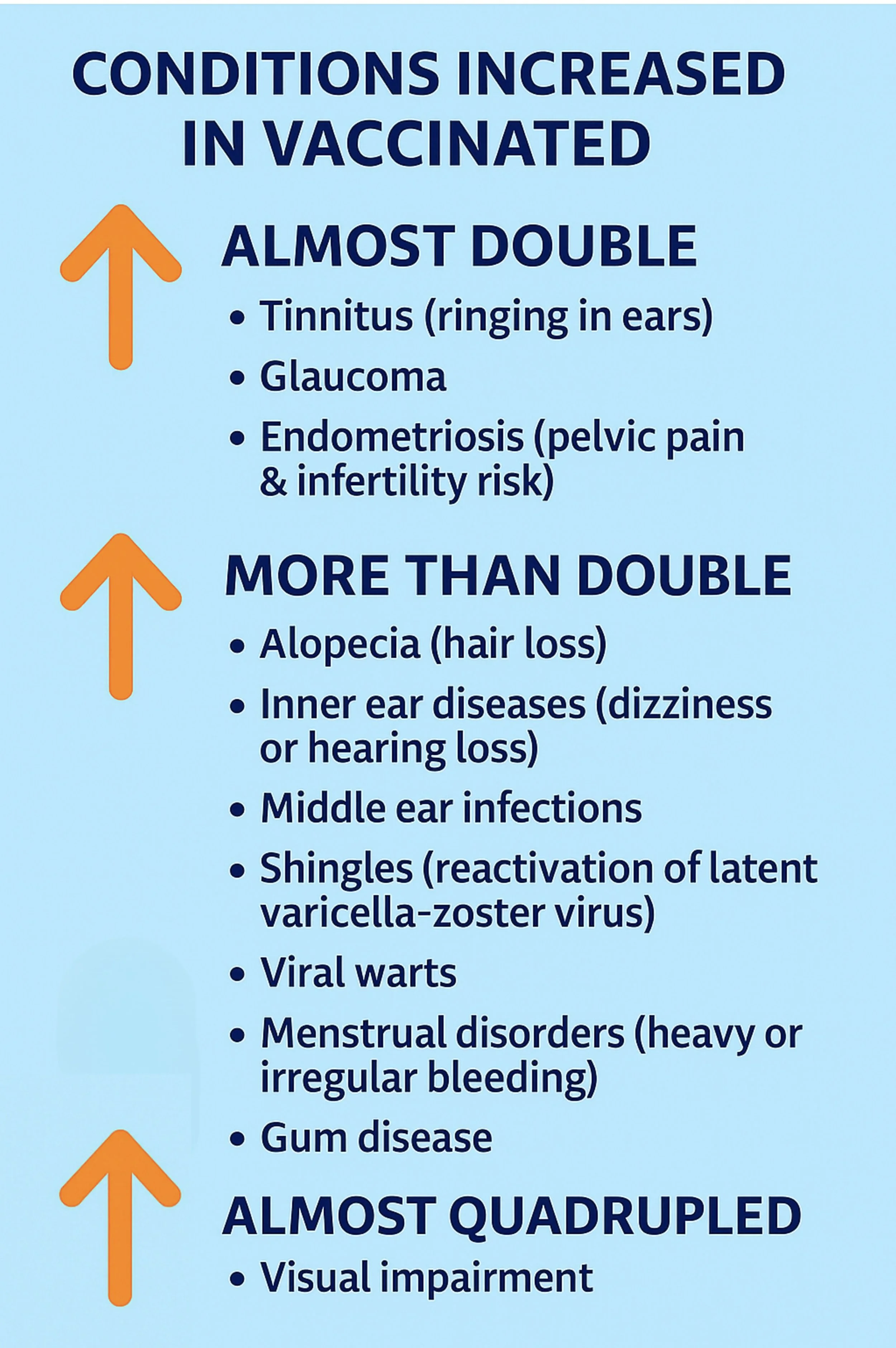 A large Korean study of nearly 2 million individuals found increases in visual impairment, shingles, warts, hair loss, menstrual disorders and other common conditions among vaccinated individuals compared to the unvaccinated: